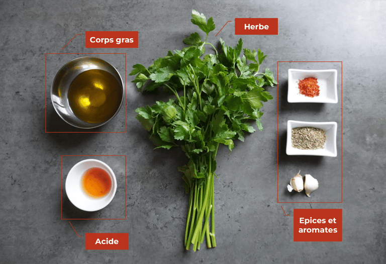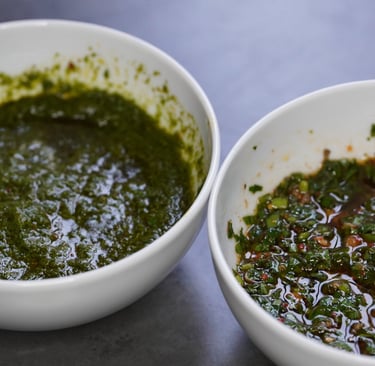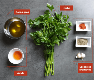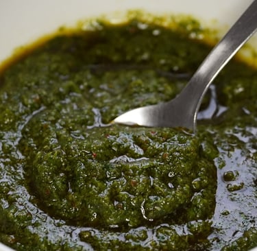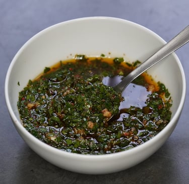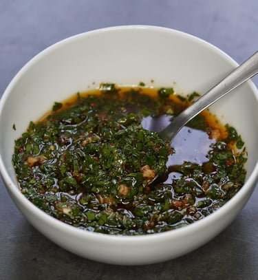 .....Chez nous, dès que l’été approche et que les barbecues font leur entrée, un pot de chimichurri apparaît presque comme par magie dans le frigo. Cette sauce d’origine argentine, composée traditionnellement de persil, d’ail, d’origan, de piment, d’huile d’olive et de vinaigre était utilisée pour rehausser la saveur des viandes grillées sur les vastes étendues de la pampa. Aujourd'hui, cette sauce est devenue un des symboles de la cuisine argentine, avec ses variations régionales et ses adaptations modernes. Elle agrémentera très bien des viandes, des poissons, des légumes grillés, mais peut également servir de marinade ou de vinaigrette dans une salade. Nous allons voir comment faire la recette traditionnelle et également comment réaliser des variantes équilibrées et réussies.