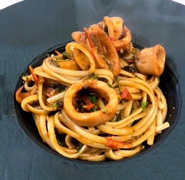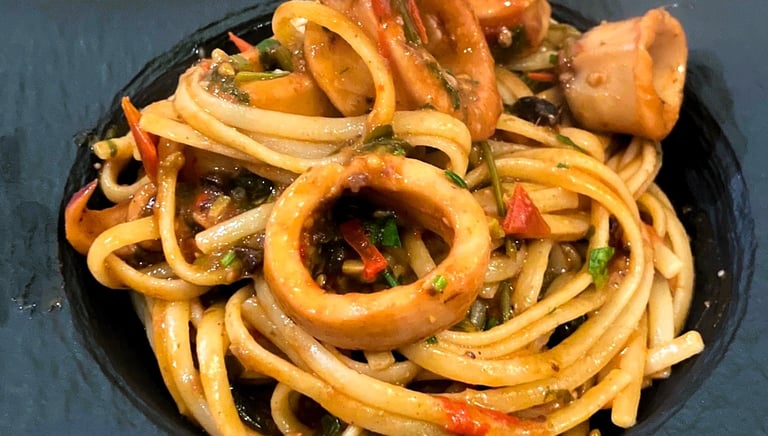 ....Les pâtes aux calamars sont un des classiques méconnus de la cuisine italienne comparée aux carbonara, caccio et peppe ou les pâtes au ragu. Elles restent cependant absolument délicieuses et riches de saveurs, sans utiliser un gramme de viande. De plus cette recette est très simple à réaliser, car il suffit de mettre les ingrédients dans votre casserole et les oublier le temps qu’ils cuisent.
